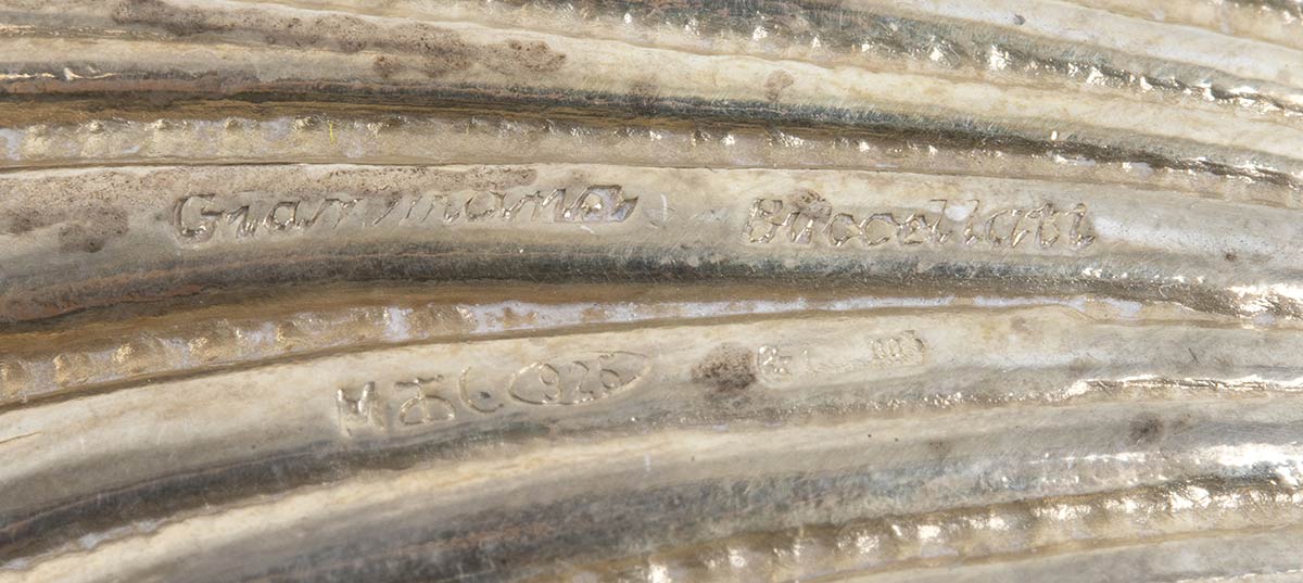 a forma di conchiglia. Argento 925/1000 punzonate "Gianmaria Buccellati - 925 - * 1 BO".