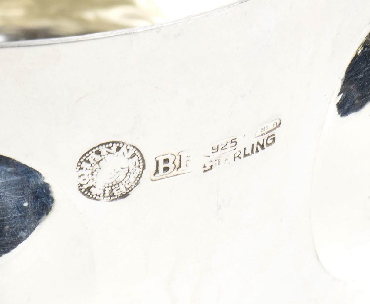di forma cilindrica con decorazione perimetrale ad ovuli. Argento 925/1000 punzonati "BR - 925 - Sterling - stella 28 3FI".