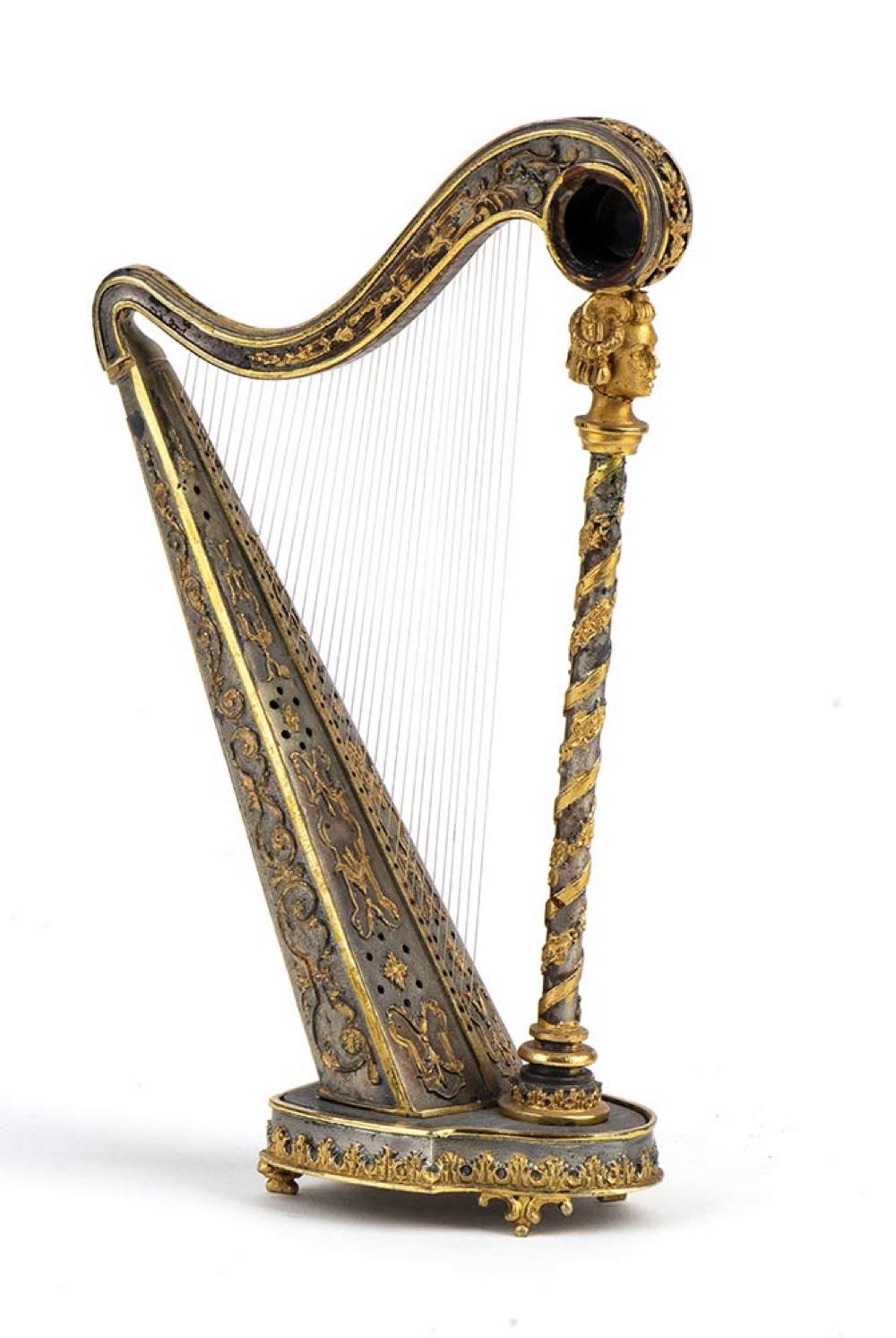 Arpa italiana in argento e lapislazzuli - anni '60 del XX secolo