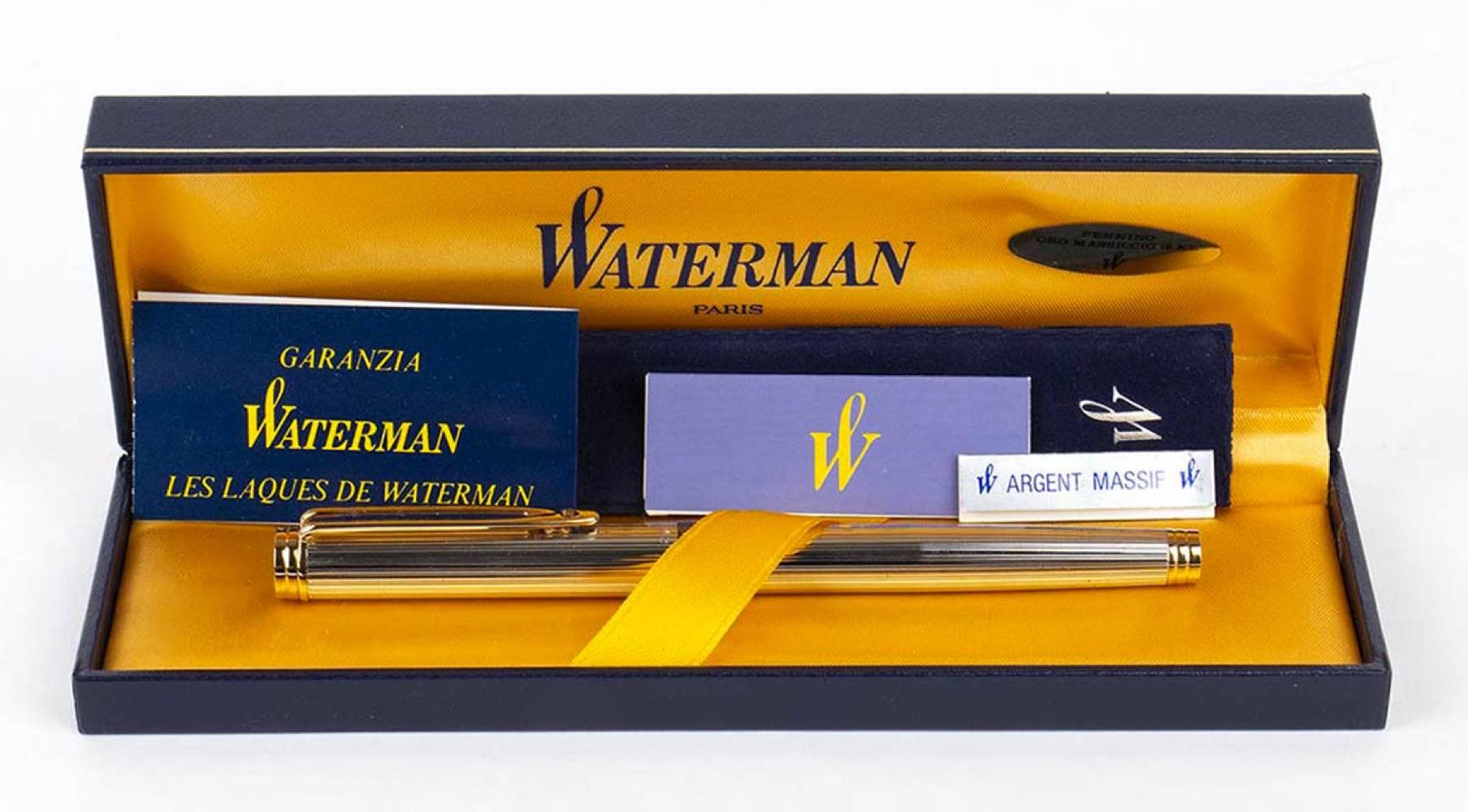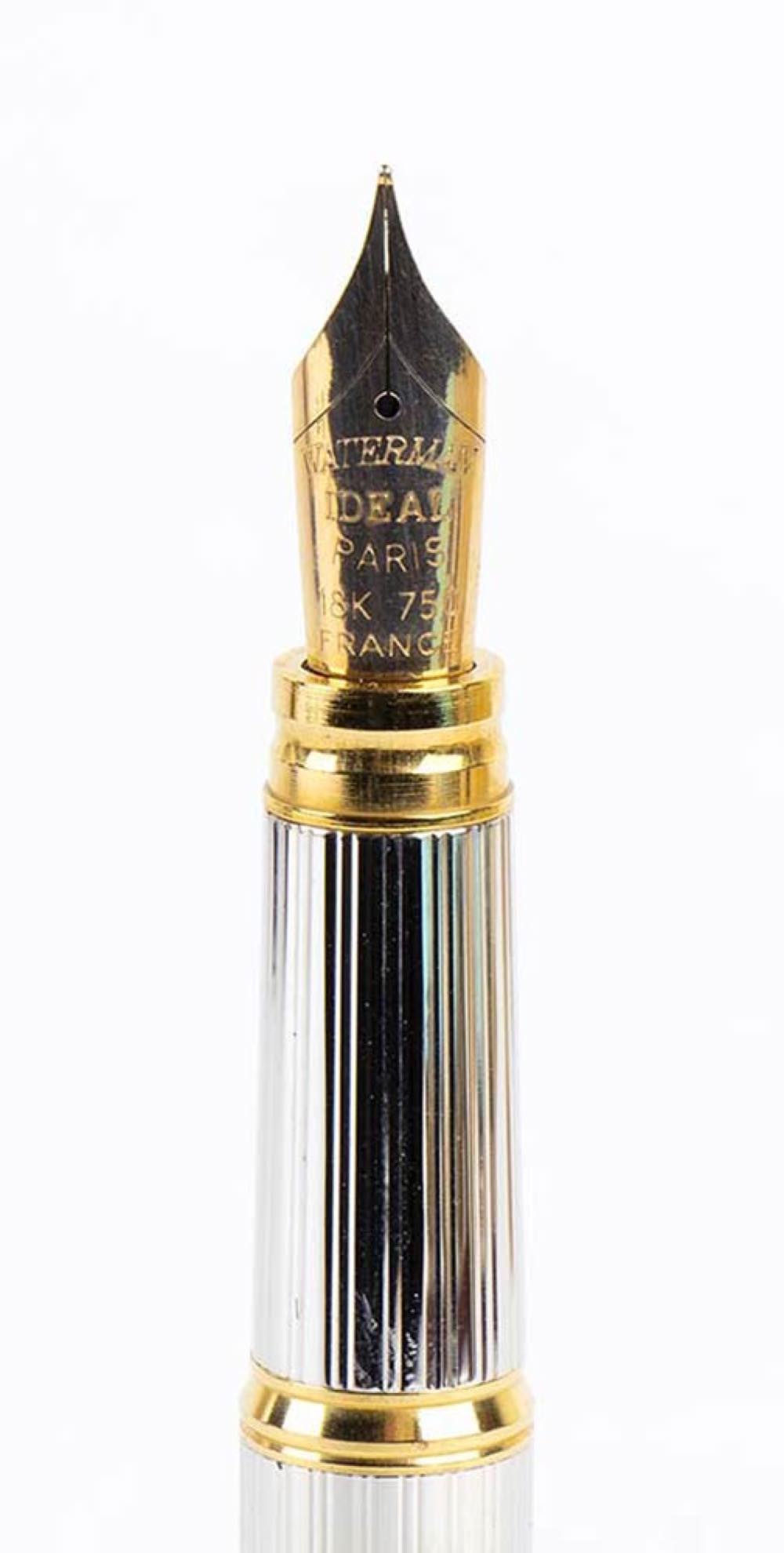 WATERMAN, penna stilografica in argento, pennino in oro 18k