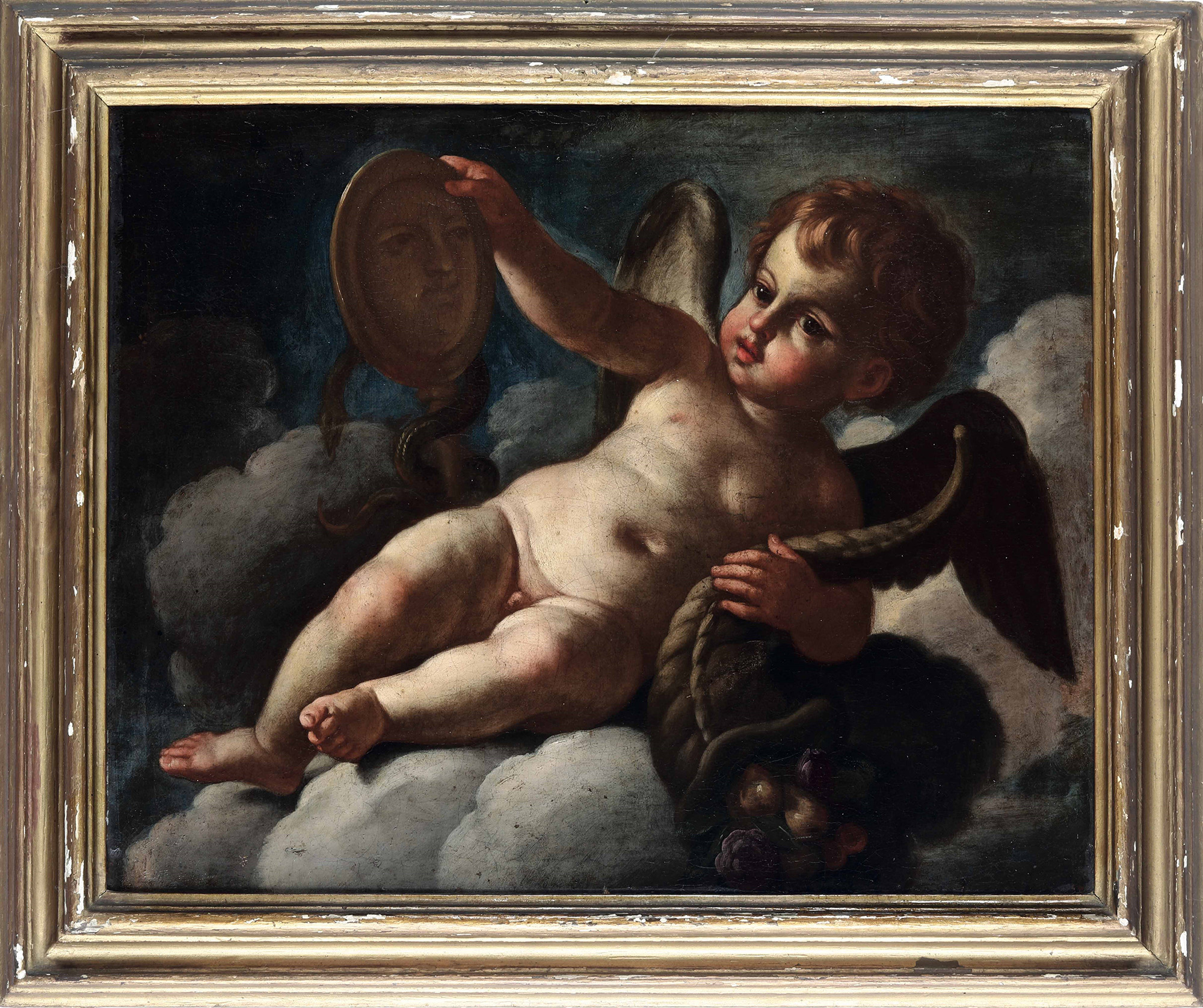 Scuola emiliana del XVII secolo, Allegoria con putto con gli attributi della Prudenza e dell'Abbondanza