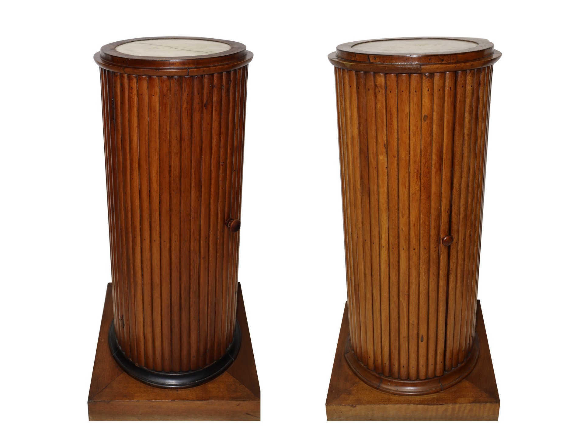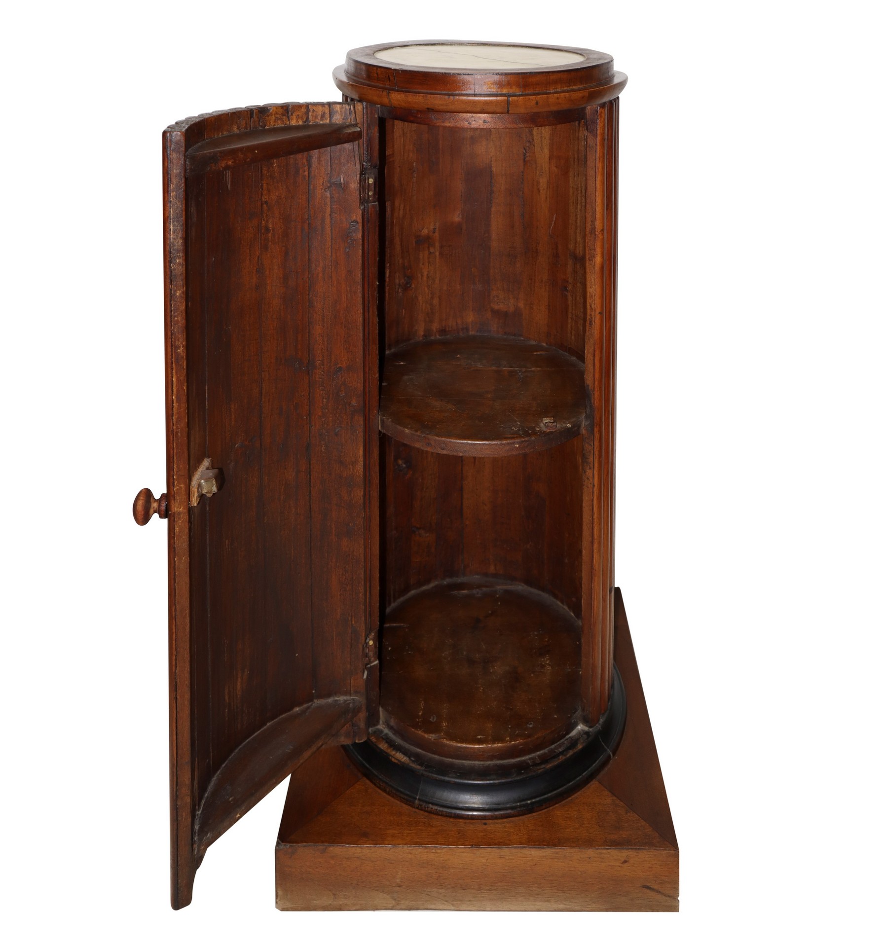 Coppia di colonne, early 19th century Empire. Origin Sicily h cm 90, base 42x42 Marmo bianco incassato. Con sportelloMarmo bianco incassato. Con sportello