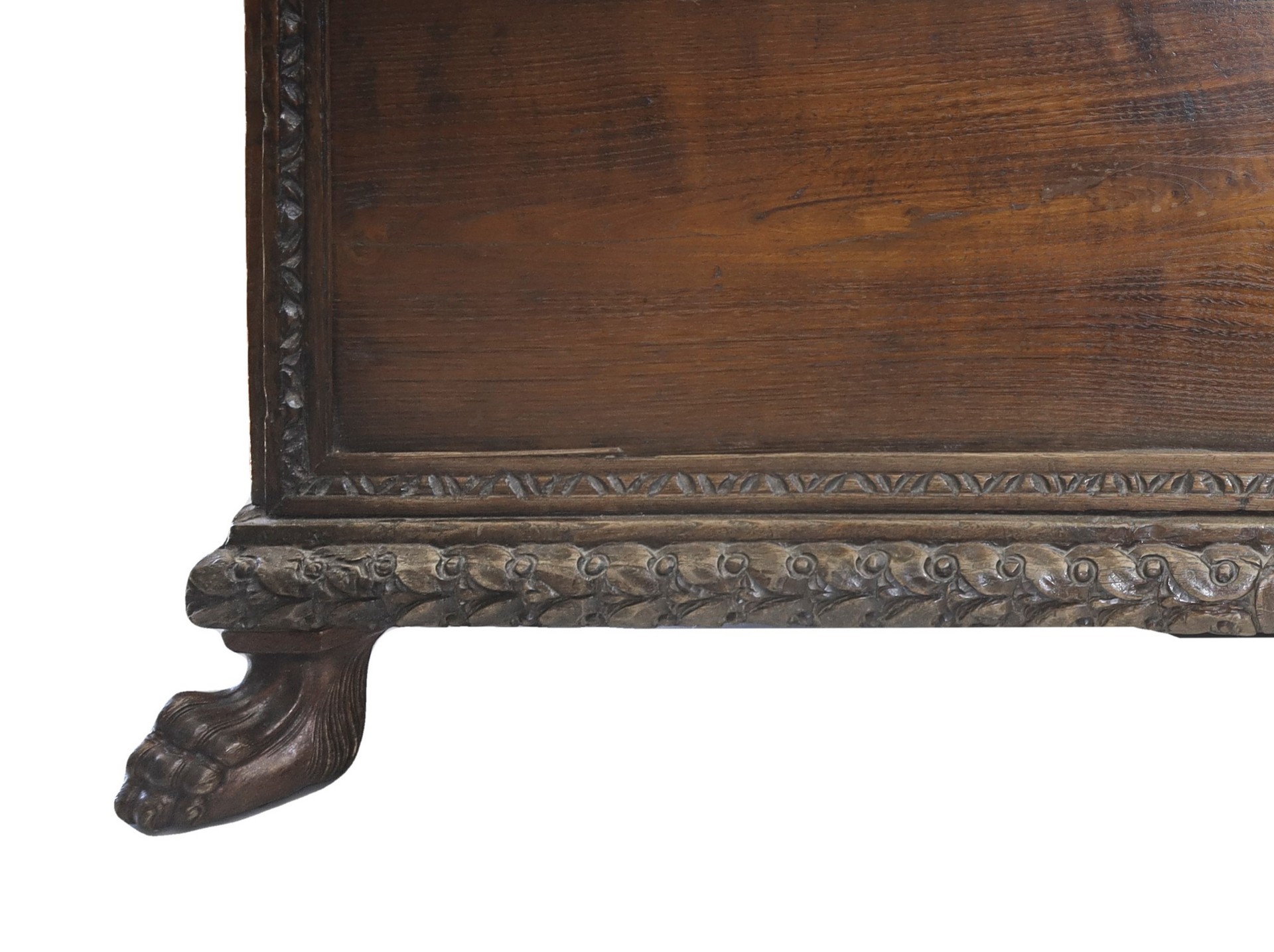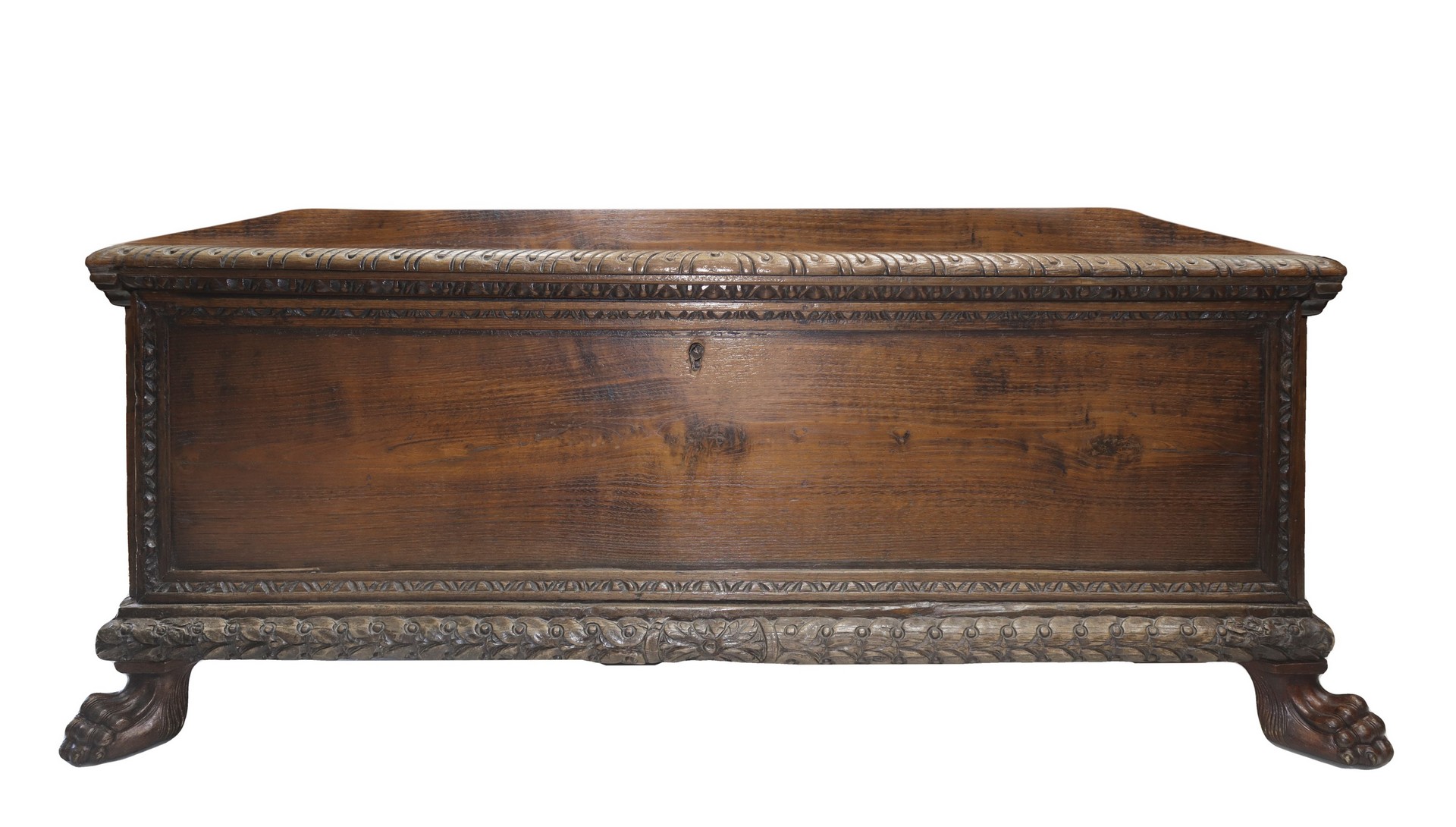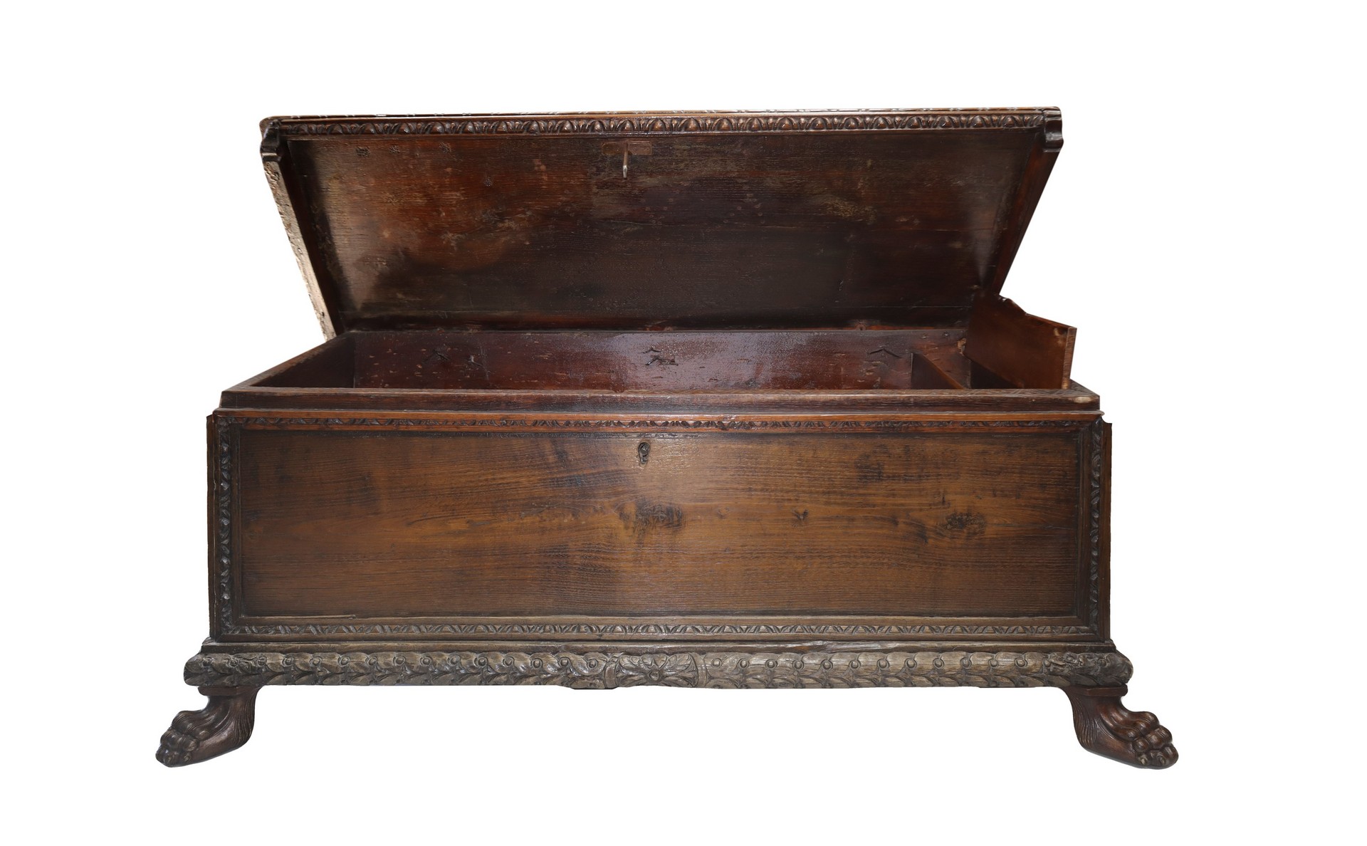 Cassapanca in legno di noce, XVIII century cm 52 x cm 130 x cm 51 Con piedi leonini e cornice baccellataCon piedi leonini e cornice baccellata