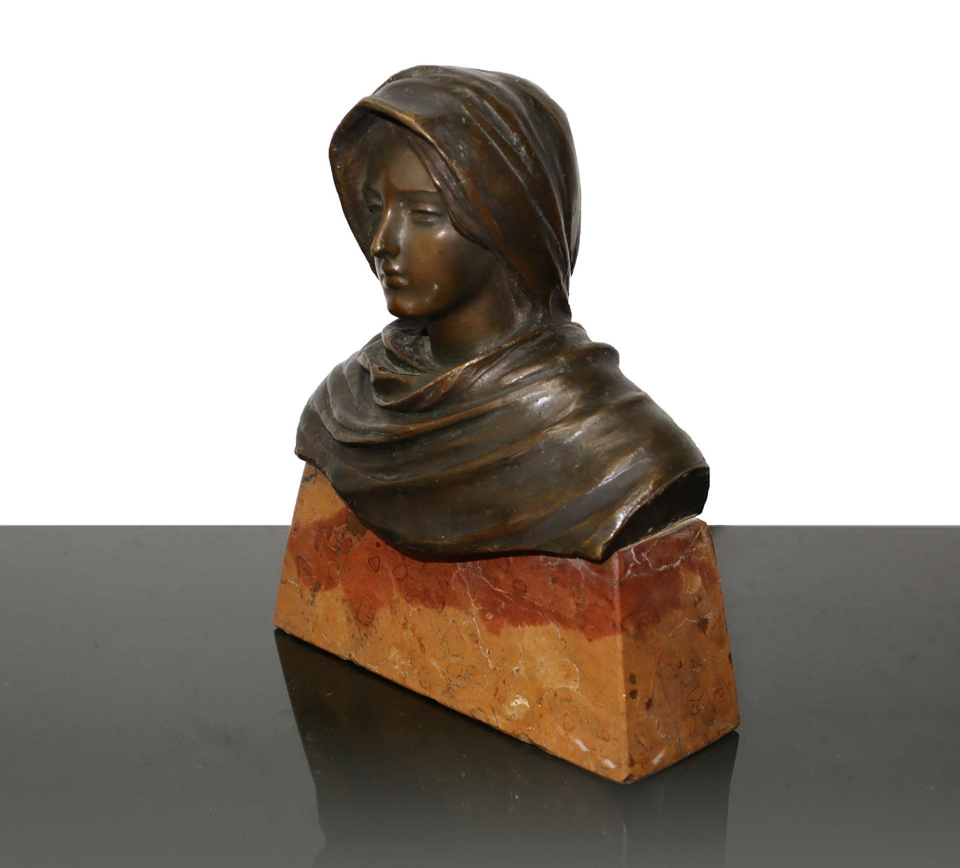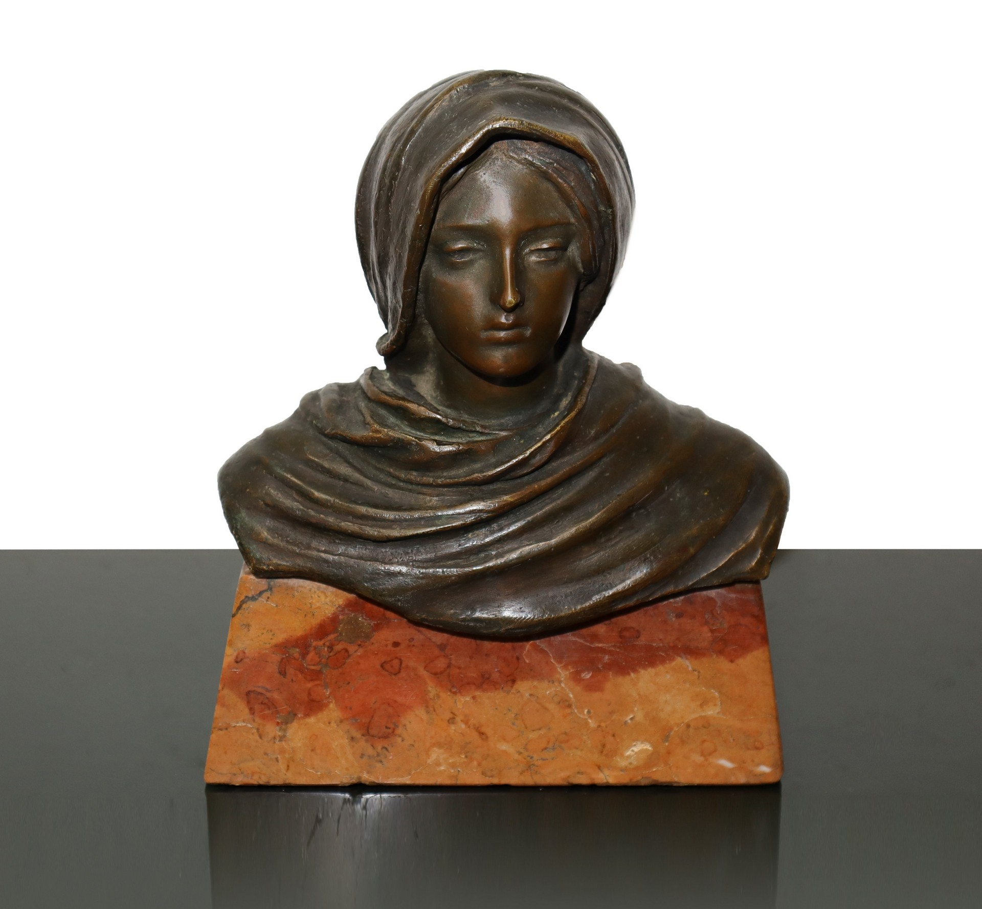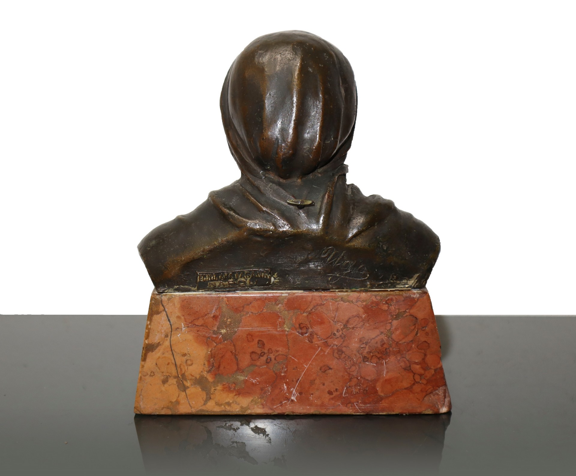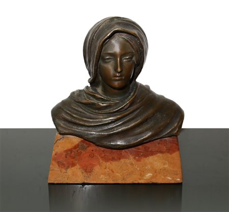Antonio Ugo (Palermo 1870-Palermo 1950) - Mezzobusto di donna H cm 18, base 15x5 bronzo patinato bruno Con base in marmo rosso verona. Firmato sul retro Ugo. Marchio Fonderia Artistica Laganà, Napoli