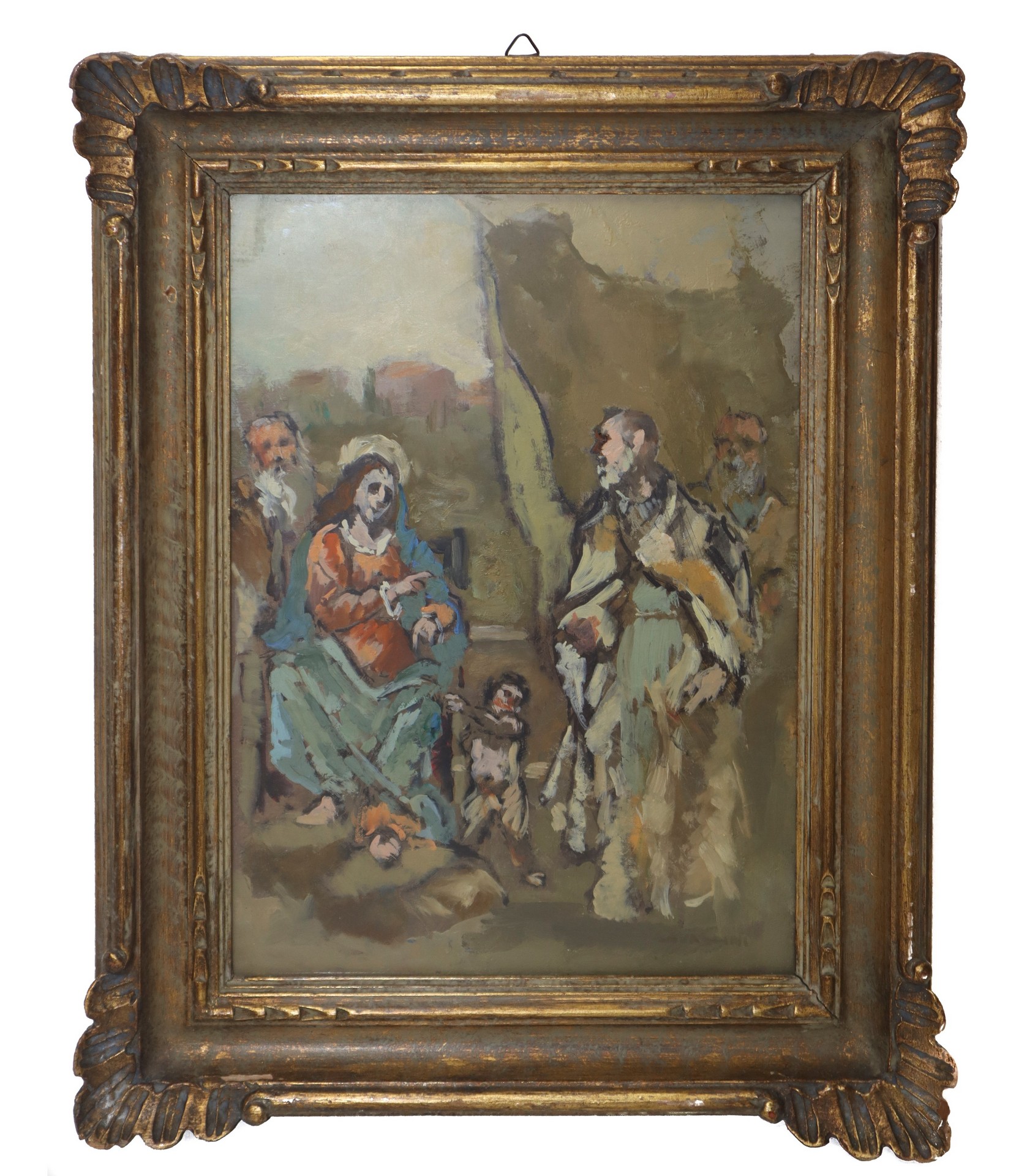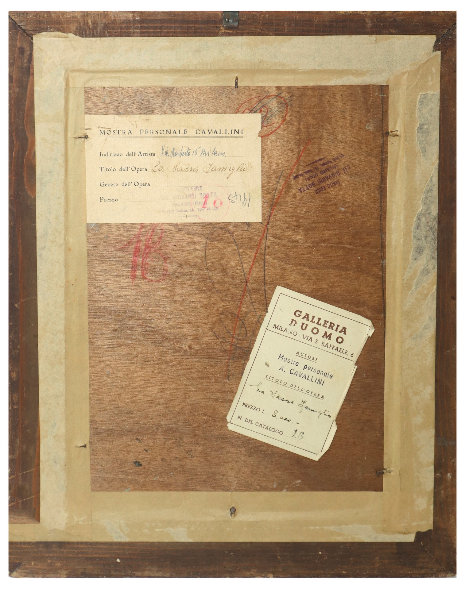 Attilio Cavallini - La Sacra Famiglia cm 36 x cm 26, in cornice 46 x cm 36 tempera su tavola Pittore Arturo Cavallini. Firmato in basso a destra sottocornice e in alto a sinistra. Sul retro etichetta Galleria duomo Milano