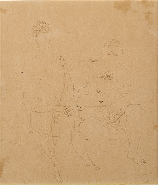 Scipione "Coppia" china su carta applicata su cartoncino cm 22,5x20,2 Provenie