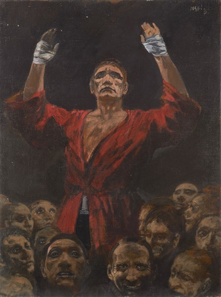Alberto Sughi "Pugile vittorioso" 1971 olio su tela cm 100x75,5 Firmato e datato