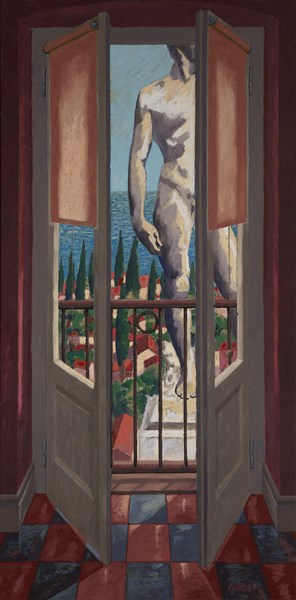 Hermann Albert "Senza titolo" 1987 olio e tempera su tela cm 250x123 Firmato in
