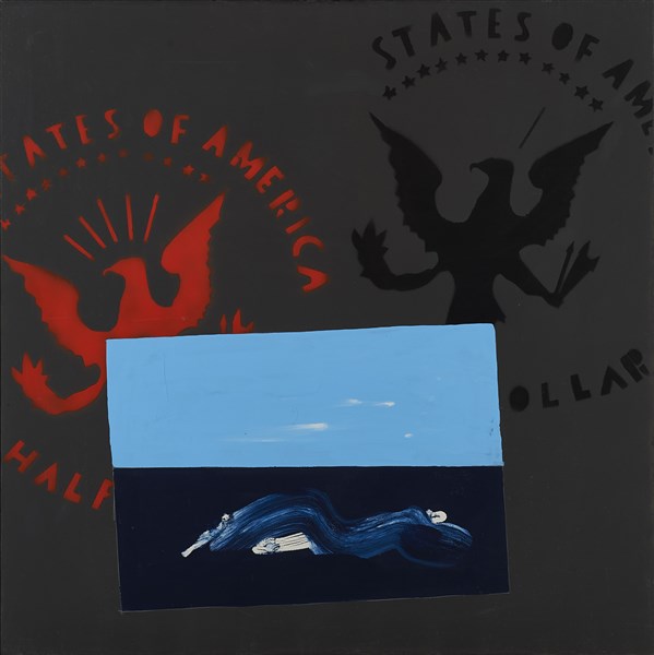Franco Angeli "Senza titolo" anni '70 tecnica mista su tela cm 100x100 Firmato a