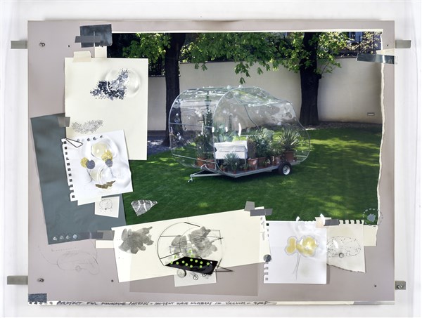 mixed media, collage and assemblage of various materials on cardboard and plexiglass