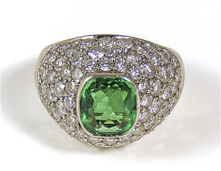 ANELLO IN ORO BIANCO, DIAMANTI E SMERALDO Anni Ottanta smeraldo al centro...