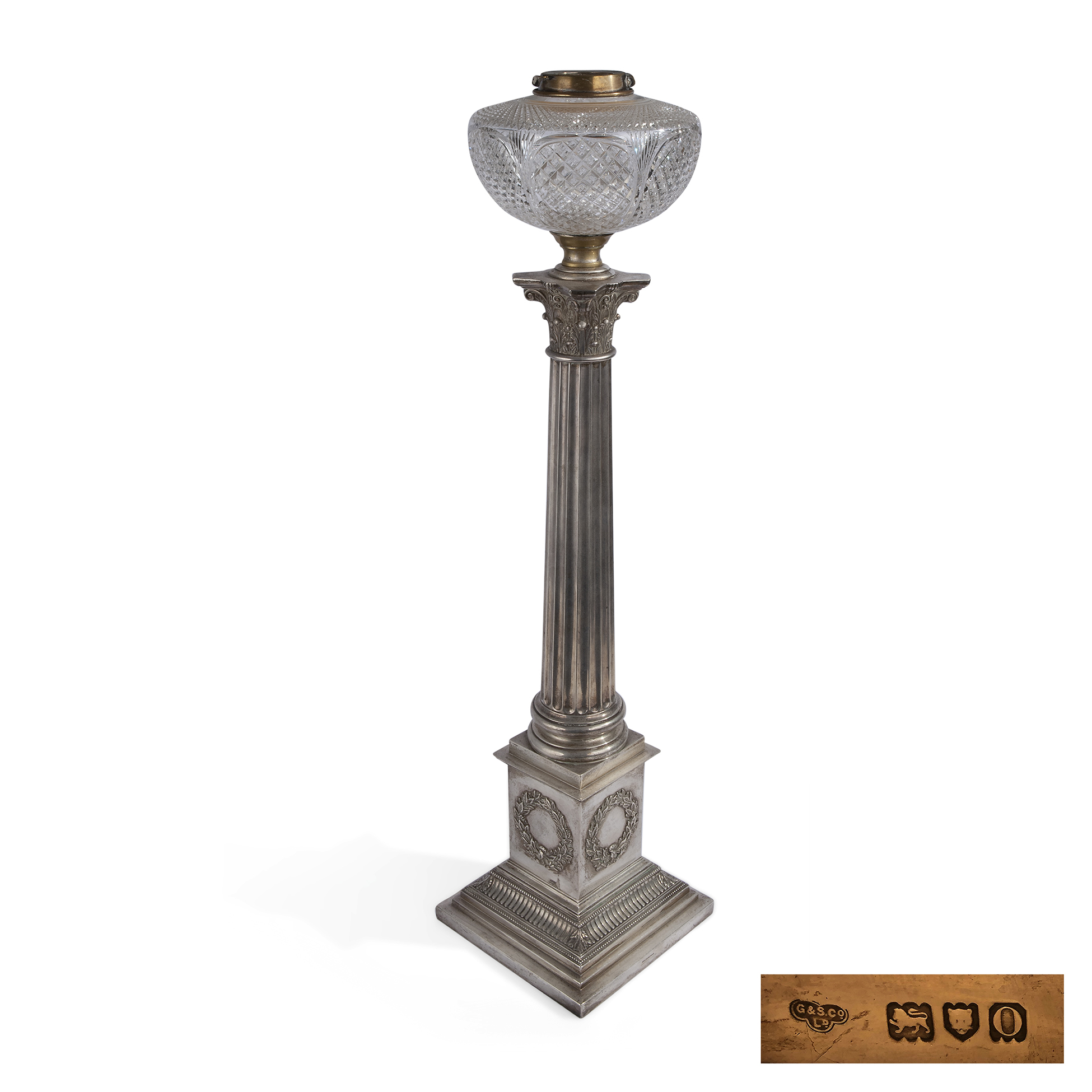 Decorato da un capitello corinzio; dimensioni complessive 68x16x16 cm.