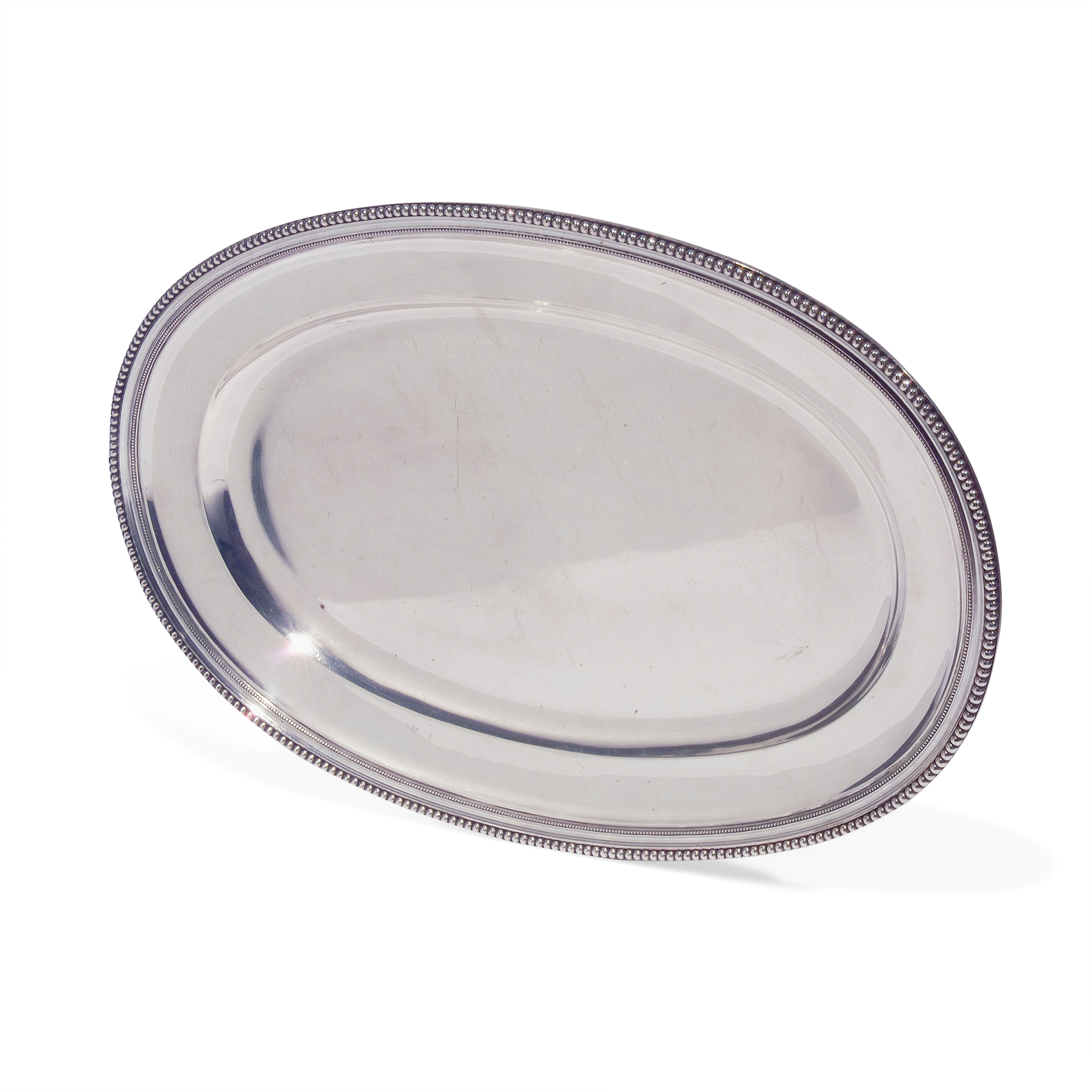Manufatto dal maestro argentiere Jean Elysèe Puiforcat. Peso complessivo 2034 gr., dimensioni complessive 3x50x33 cm.