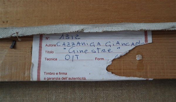 Parere verbale di autenticità rilasciato dall'Archivio Giancarlo Cazzaniga, Milano