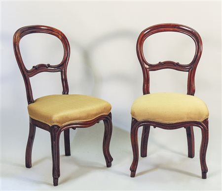 SERIE DI SEI SEDIE IN NOCE seconda metà del XIX secolo schienale arrotondato...