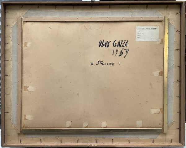 Obes Gazza "Stazione" 1959 olio su cartone cm 53x68 firmato, titolato e datato a