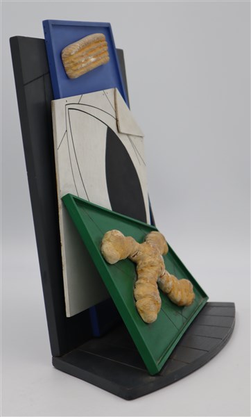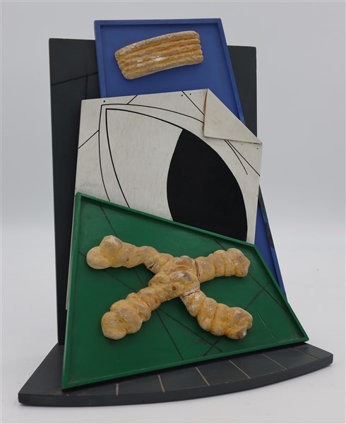 Lucio del Pezzo "Omaggio a De Chirico" 1963 multiplo in legno e gesso dipinto cm