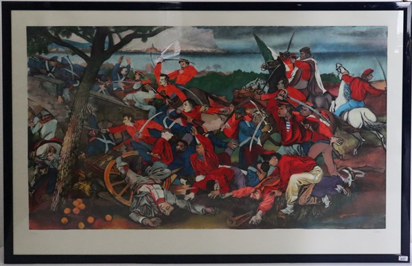 Renato Guttuso "La battaglia di Ponte Ammiraglio" acquaforte e acquatinta a col