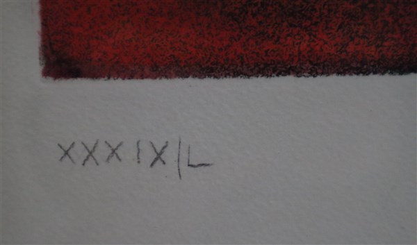 firmata e numerata XXXIX/L in basso a matita, timbro a secco Il Cigno Stamperia d'Arte in basso a destra. In cornice (lievi difetti)