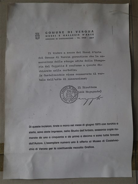 Timbro a secco Edizioni del Cappello e Musei d'arte, Comune di Verona. In cornice