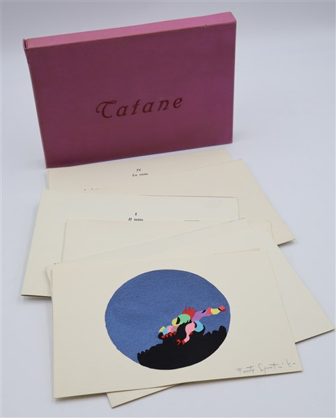 Fausta Squatriti "Tatane" 1966otto serigrafie a colori e una tempera ad illustrazione di un t