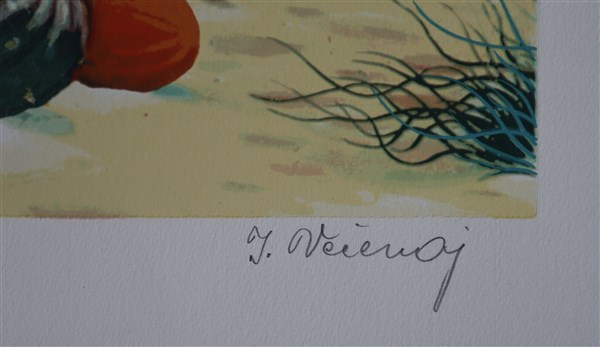 Ivan Vecenaj "Gallo" serigrafia a colori cm 100x69 Firmata e numerata XV/XXX in