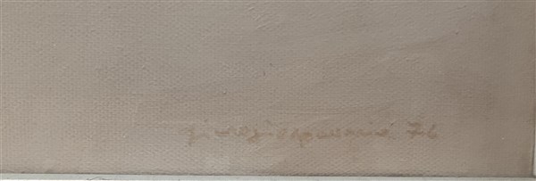 Firma indecifrata "Senza titolo" 1976, tecnica mista su tela cm 79x59 firmato e