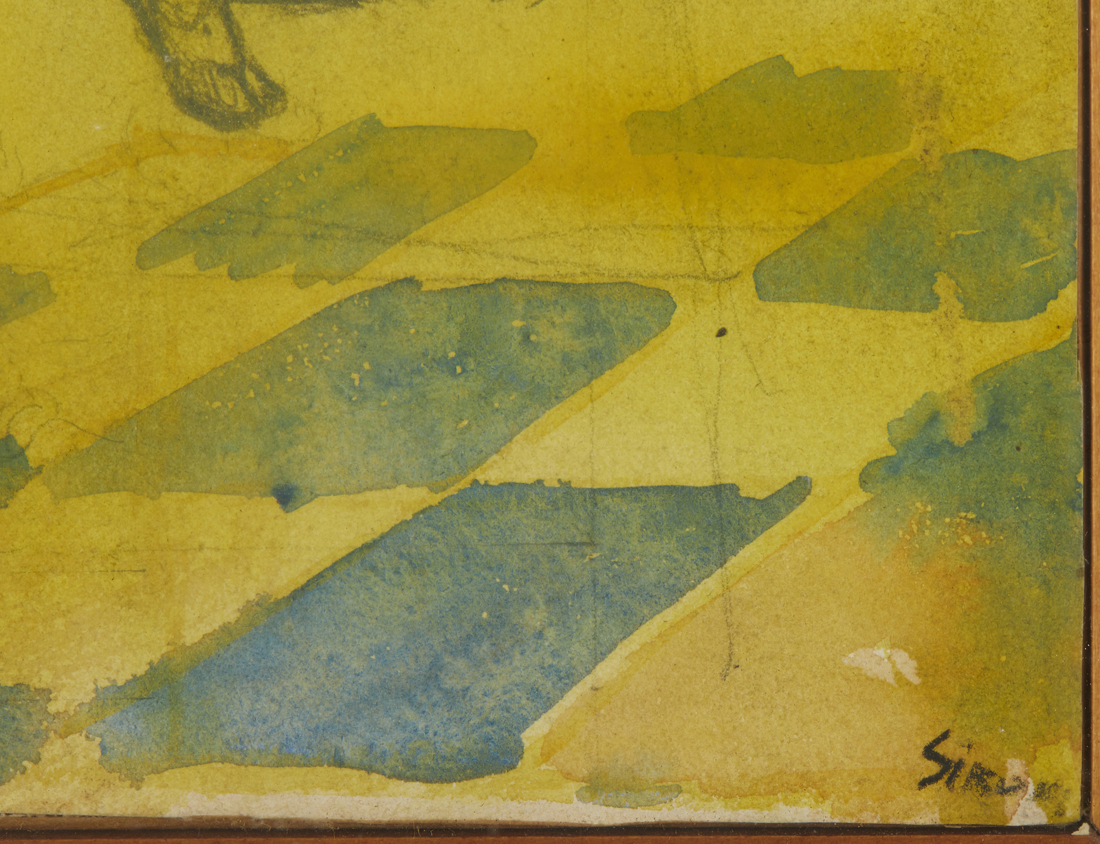 Mario Sironi, Milano, con il numero 74/22 RA come da documentazione allegata all'opera. Si tratta, con molta probabilità, di un’opera realizzata per le scenografie e i costumi per Marionette, che passione! di Rosso di San Secondo, Milano, Teatro del Convegno, 1924. Cornice presente