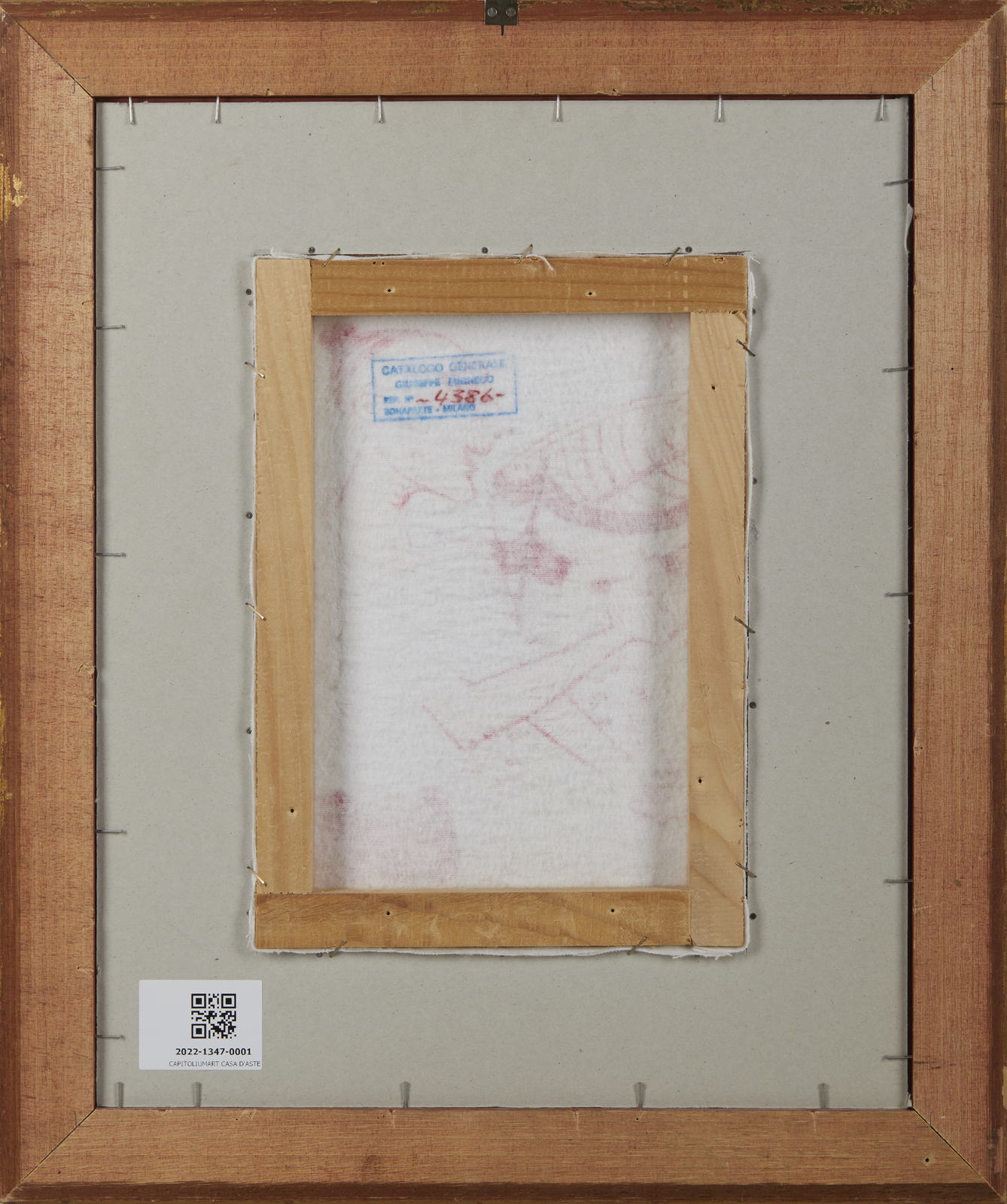 MIGNECO GIUSEPPE (1908 - 1997) Pescatore. 1991. Tecnica mista su carta su tela. Cm 21,00 x 29,50. Firma in basso a sinistra. Al retro timbro della Galleria Bonaparte, Milano. Opera archiviata presso la Galleria Bonaparte, Milano, come da documentazione fotografica allegata all'opera riportante il relativo numero d'inventario. Cornice presente