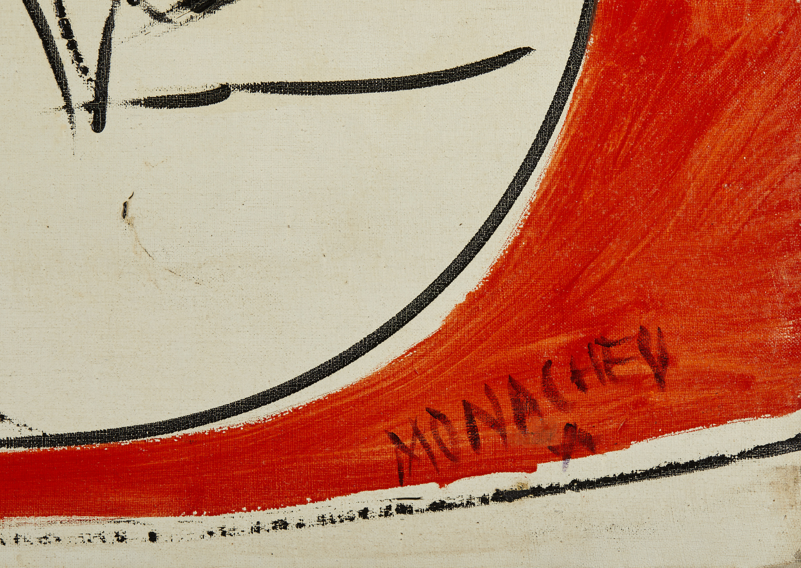 MONACHESI SANTE (1910 - 1991) Senza titolo. Olio su tela . Cm 100,00 x 70,00. Firma in basso a destra. Autentica di Luce Monachesi su fotografia riportante il relativo numero d'inventario. Certificato d'autenticità Telemarket, Roncadelle.