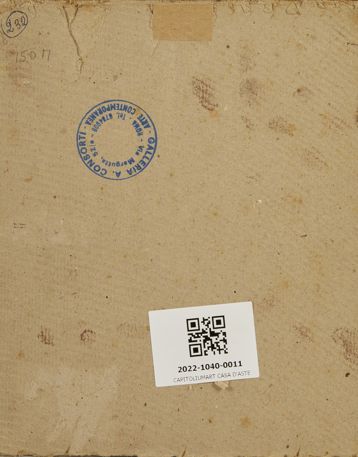 CARUSO BRUNO (1927 - 2018) Senza titolo. 1965. Tecnica mista su cartone pressato. Cm 19,00 x 23,50. Firma in basso a sinistra, Al retro timbro Galleria A. Consorti Arte Contemporanea, Roma. Autentica dell'artista su fotografia con timbro della Galleria A. Consorti, Roma.