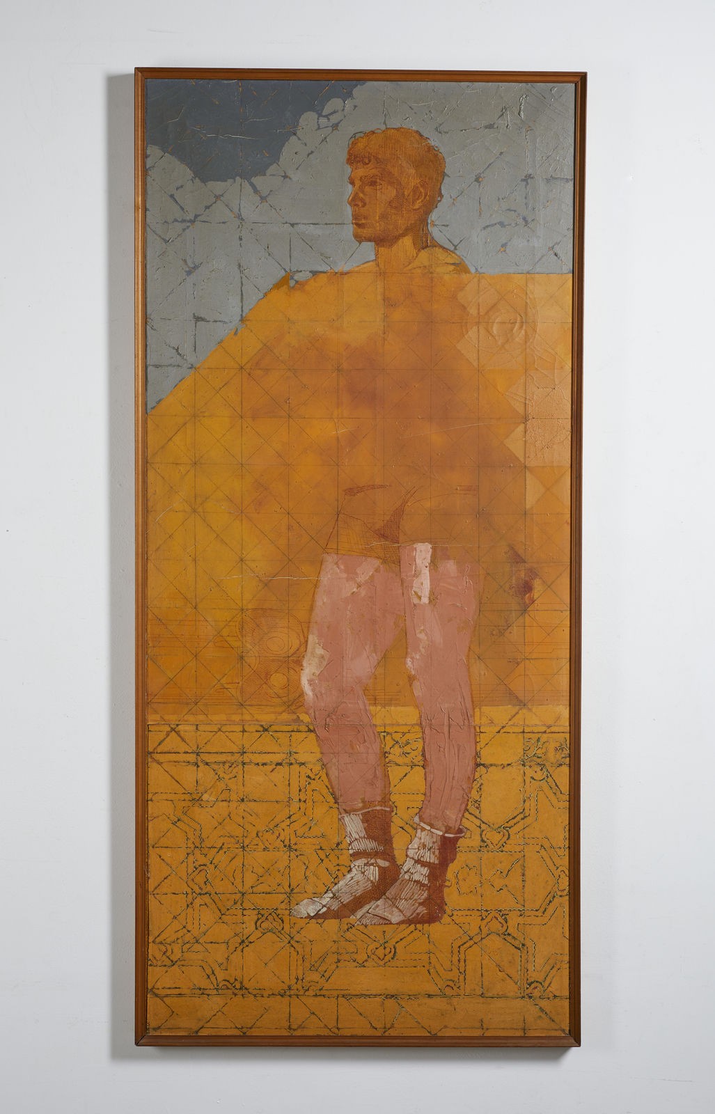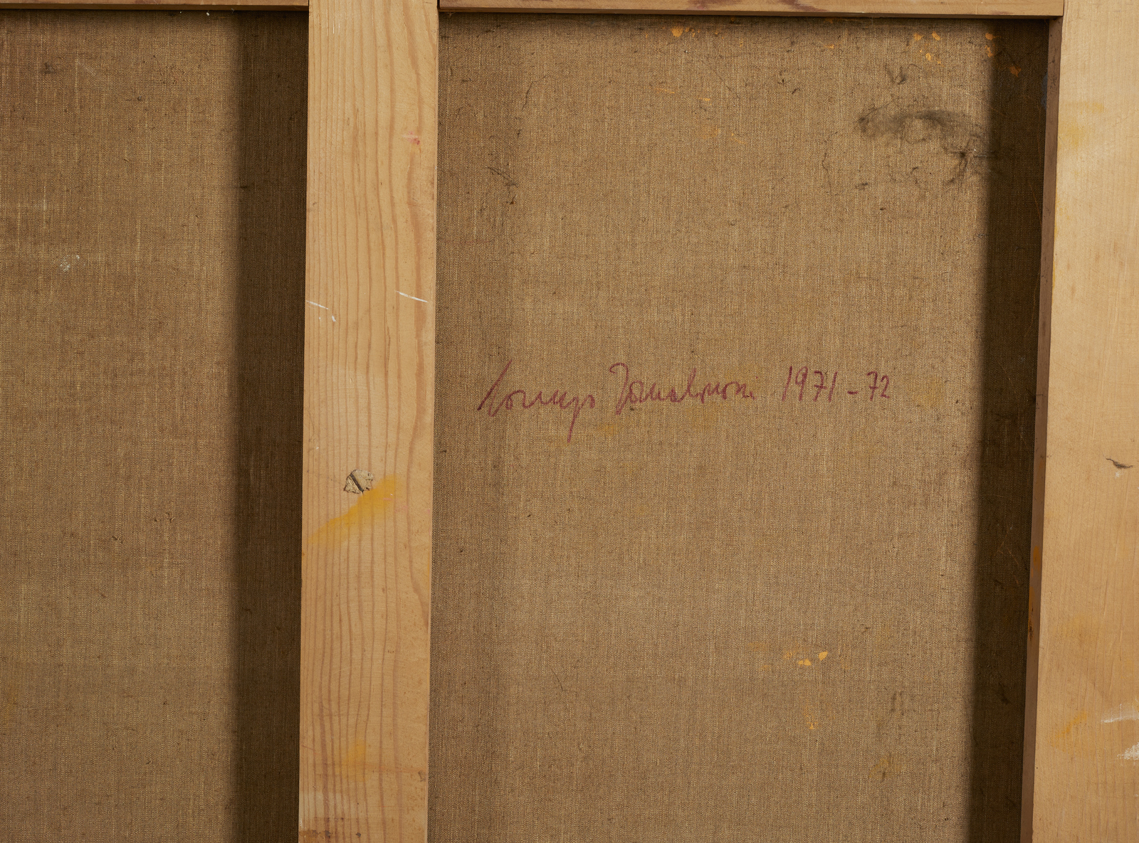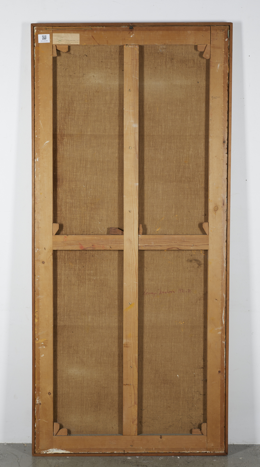 TORNABUONI LORENZO (1934 - 2004) Senza titolo. Collage e olio su tela. Cm 90,00 x 200,00. Al retro firma, anno e cartiglio descrittivo Galleria Il Gabbiano, Roma. 1971-72. Provenienza: Galleria Il Gabbiano, Roma; Collezione privata. Lievi difetti. Cornice presente