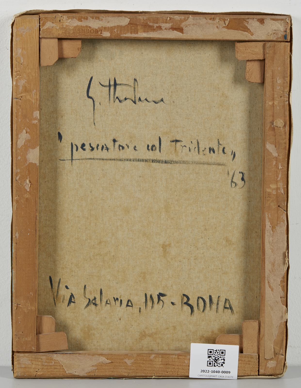 STRADONE GIOVANNI (1911 - 1981) Pescatore col tridente. 1963. Olio su tela . Cm 30,00 x 40,00. Al retro titolo, firma e anno. Opera archiviata presso Archivio Generale Giovanni Stradone, Roma, come da documentazione fotografica allegata all'opera con il relativo numero d'inventario. Provenienza: Galleria A. Consorti, Roma; Collezione privata.
