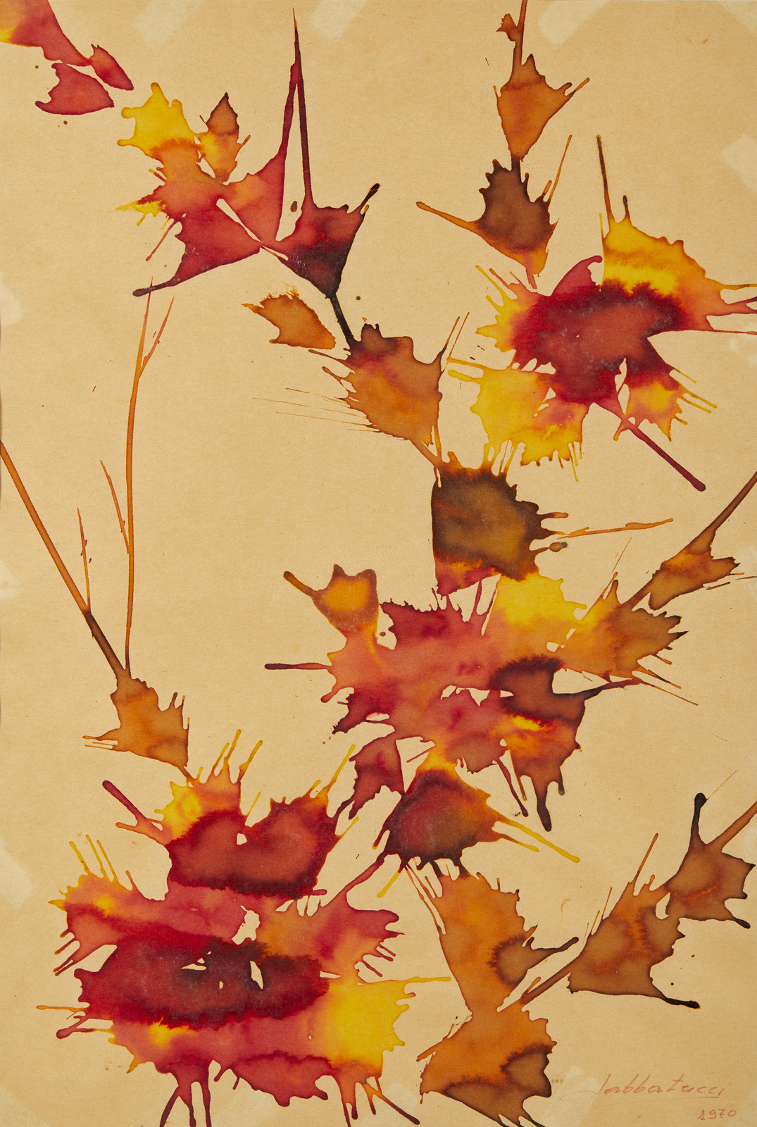 SABBATUCCI LUCIANO (1929 - 2014) Senza titolo. 1970. Gouache su carta. Cm 34,50 x 50,00. Firma e anno in basso a destra. Cornice presente