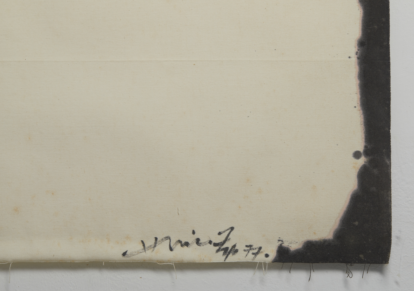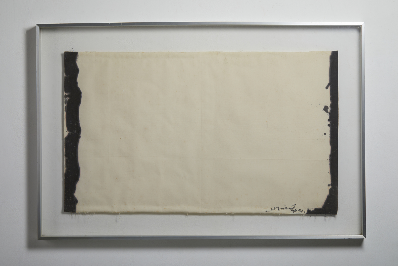 CHIN HSIAO (n. 1935) Senza titolo. 1977. Tecnica mista su tela. Cm 68,50 x 117,00. Firma e anno in basso a destra. Autentica dell'artista su fotografia. Provenienza: Collezione Tonetti, Firenze; Collezione privata, Pavia. Lievi difetti. Cornice presente
