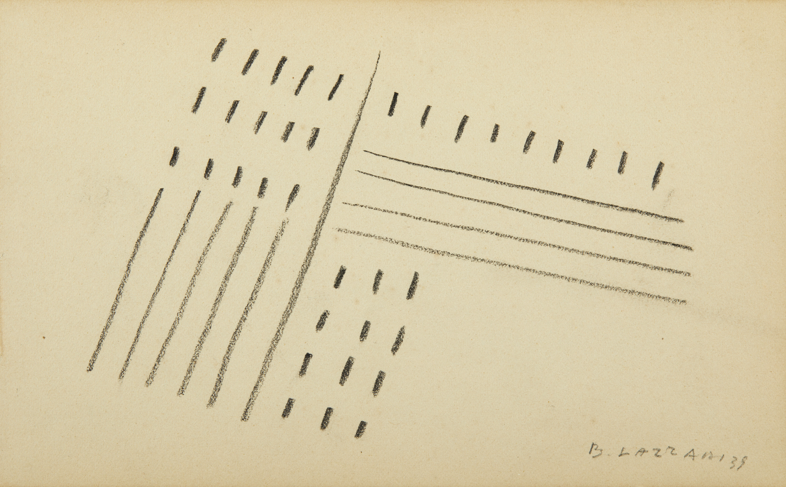 LAZZARI BICE (1900 - 1981) Lazzari '39. 1939. Disegno grafite su carta. Cm 17,00 x 10,50. Firma e anno in basso a destra. Opera archiviata presso Archivio Bice Lazzari, Roma, come da documentazione fotografica allegata all'opera riportante il relativo numero d'inventario. Cornice presente