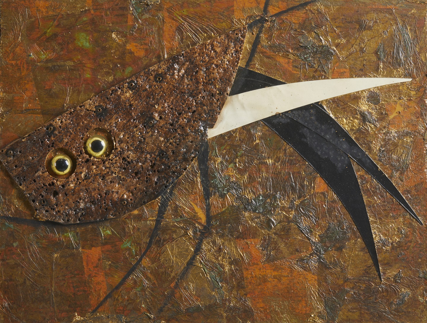 CRIPPA ROBERTO GAETANO (1921 - 1972) Uccello. 1970. Tecnica mista su tavola. Cm 35,50 x 27,00. Autentica dell'artista su fotografia con timbro Galleria d'Arte Cortina, Milano. Si ringrazia la Galleria Cortina, Milano, per aver confermato la provenienza. Provenienza: Galleria Cortina, Milano; Collezione privata. Lievi difetti. Cornice presente