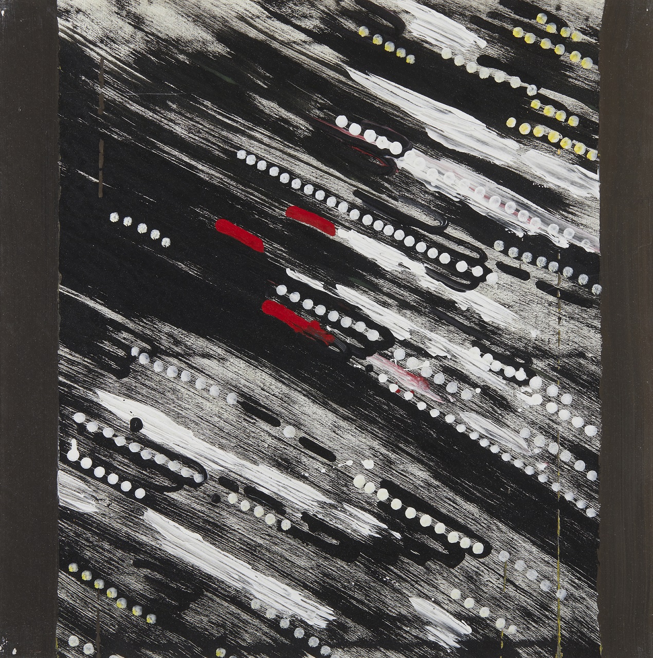 BIGGI GASTONE (1925 - 2014) Velocità nere. 2008. Idropittura su tela. Cm 70,00 x 70,00. Al retro titolo, firma e anno. Provenienza: Aste Picenum, Cingoli; Telemarket, Roncadelle (Bs); Collezione privata. Autentica dell'artista. Lievi difetti. . Cornice presente