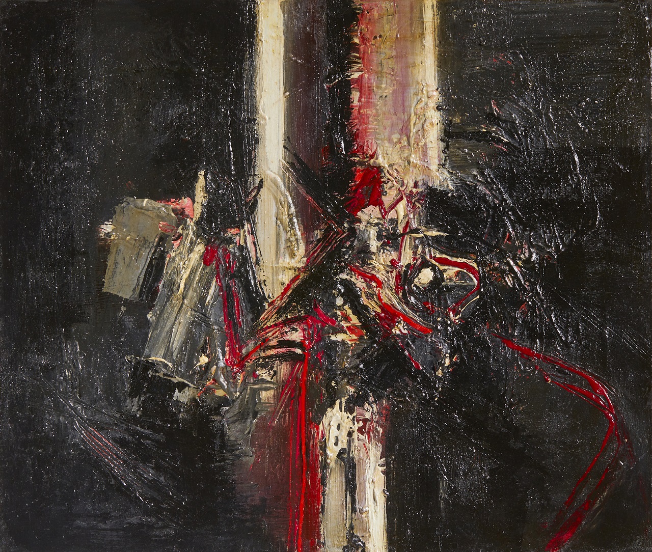 RUGGERI PIERO (1930 - 2009) Natura. 1962. Tecnica mista su tela. Cm 65,00 x 55,00. Firma in basso a destra. Al retro titolo, firma e anno. Si ringrazia la Fondazione Piero Ruggeri per aver confermato l'autenticità dell'opera. Opera in corso di archiviazione presso la Fondazione Piero Ruggeri. Lievi difetti. Cornice presente