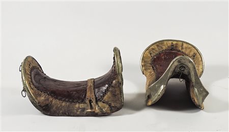 COPPIA DI PICCOLE SELLE Spagna XIX secolo realizzate in cuoio e metallo...