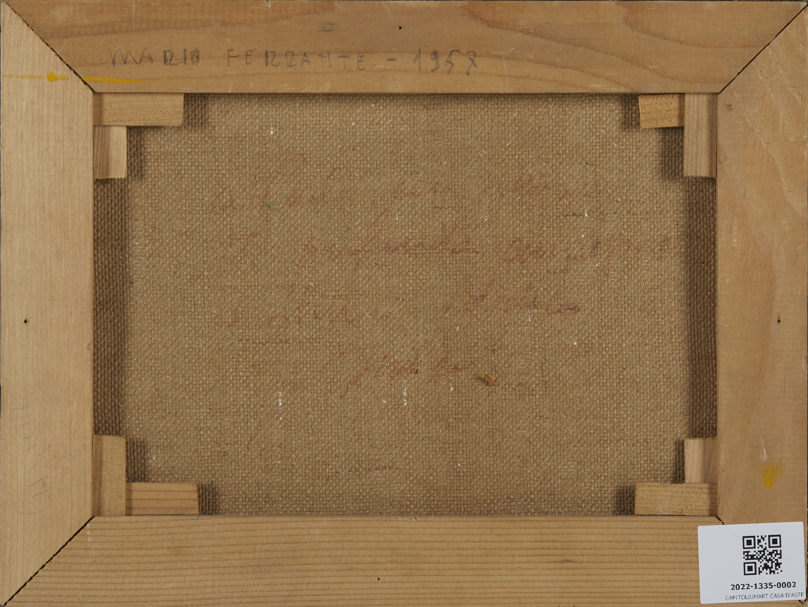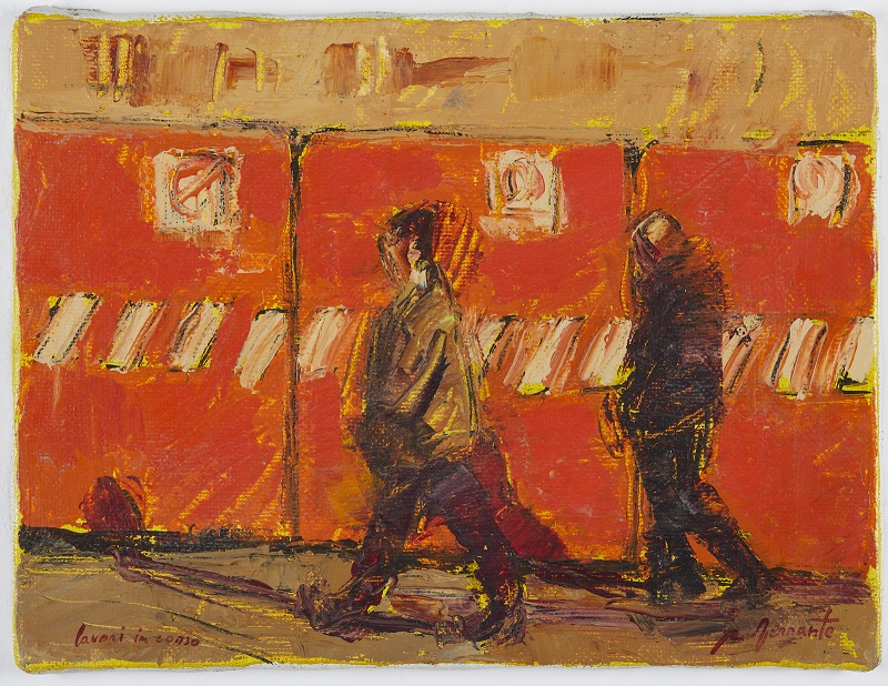 FERRANTE MARIO (n. 1957) Lavori in corso. Olio su tela . Cm 40,00 x 30,00. Titolo in basso a sinistra. Firma in basso a destra e al retro.