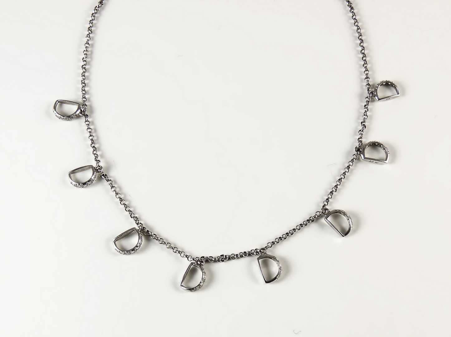 CATENINA IN ORO BIANCO con charmes in platino modellate ad arco, ciascuna...