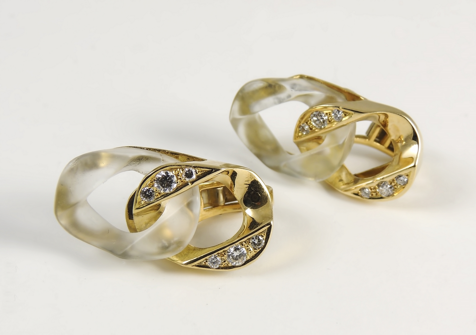 PAIO DI ORECCHINI IN ORO GIALLO E CRISTALLO DI ROCCA realizzate come due maglie piatte impreziosite da diamanti taglio brillante, en pendant con il collier oro gr complessivi netti 20, ct complessivi 0,56