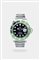 Cassa in acciaio "RRR" con fondello a vite, lunetta girevole monodirezionale con inserto verde. Quadrante nero con indici geometrici luminescenti applicati, datario al 3 ed indicazione dei secondi continui al centro. Bracciale Oyster in acciaio integrato con chiusura clasp e prolunga Submariner.