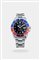Cassa in acciaio con fondello a vite e lunetta girevole bidirezionale. Quadrante nero con indici geometrici luminescenti applicati. Presente la lancetta del secondo fuso orario ovvero la complicazione GMT, indicazione centrale dei secondi continui e datario ad ore 3. Bracciale in acciaio integrato con chiusura clasp.