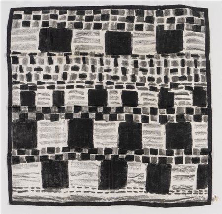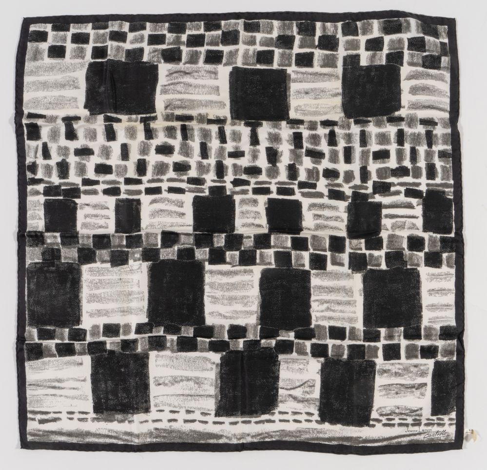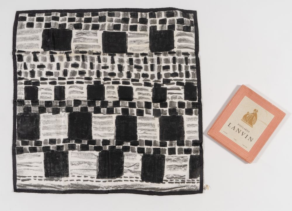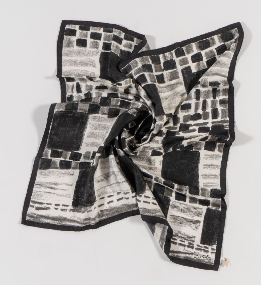 LANVIN Foulard in seta a fantasia sui toni del nero e del bianco. Anni...