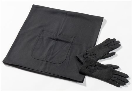 HERMÈS Lotto composto da guanti neri e stola con tasche in cashmere sui toni...