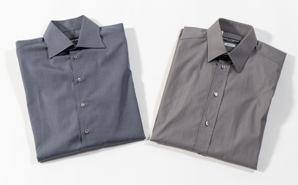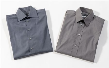 DOLCE & GABBANA, GIORGIO ARMANI Lotto composto da due camicie in cotone sui toni del grigio. Ciascuna riporta taglia 38/15. Composizione: 96% cotone e 4% elastane; 100% cotone. Recano etichette Dolce & Gabbana Made in Italy Gold e Giorgio Armani Made in Italy. (Lievi difetti).