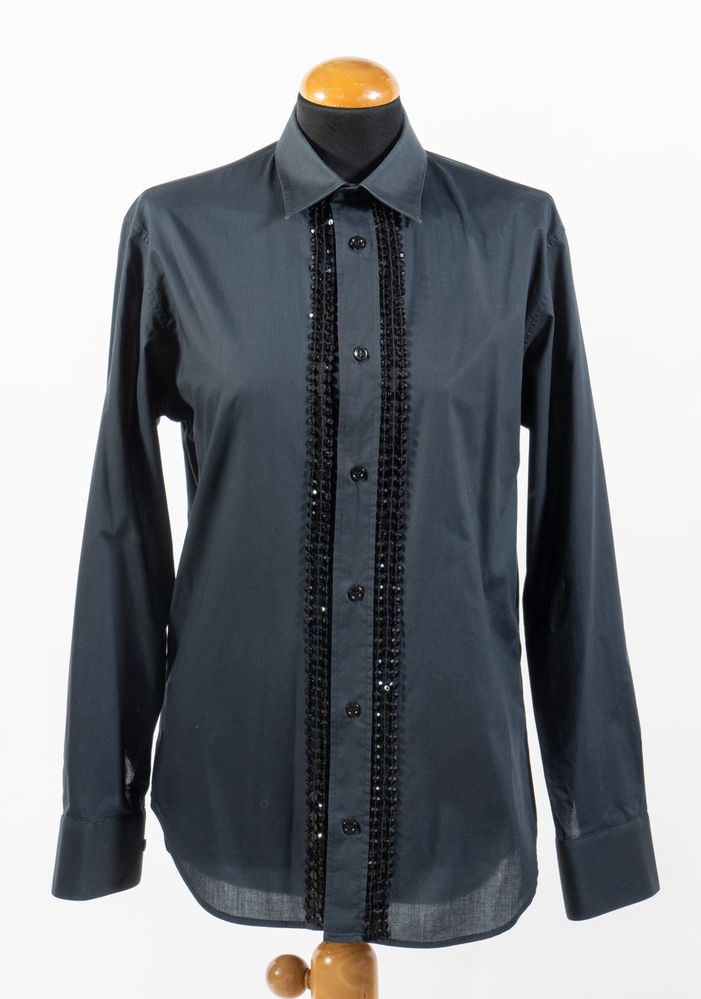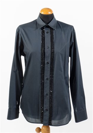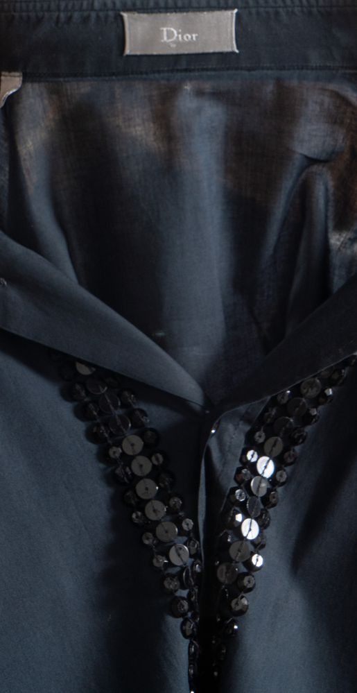 DIOR Camicia in cotone nero arricchita con paillettes. Riporta taglia 38....