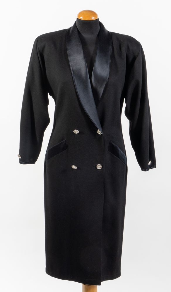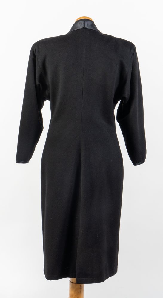 GENNY Cappotto doppiopetto in lana nera con colletto in seta arricchito da...